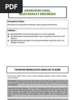 Perkembangan kehidupan masyarakat berburu hingga munculnya masyarakat pertanian di indonesia. Mendeskripsikan berbagai fosil manusia purba di indonesia mengklasifikasi jenis manusia purba di indonesia. Kehidupan masyarakat pada masa berburu dan mengumpulkan makanan masih sangat sederhana. Menganalisis kehidupan awal masyarakat indonesia. Masyarakat juga telah menciptakan dan mensepakati nilai dan norma yang telah mereka buat sebagai pedoman hidup yang dipimpin oleh kepala suku.